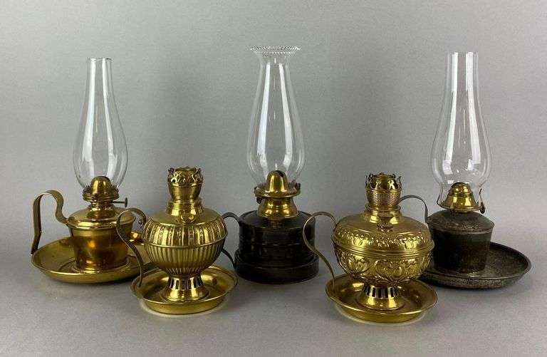 LOT 233 - Group of 5 Antique Hand Oil Lamps