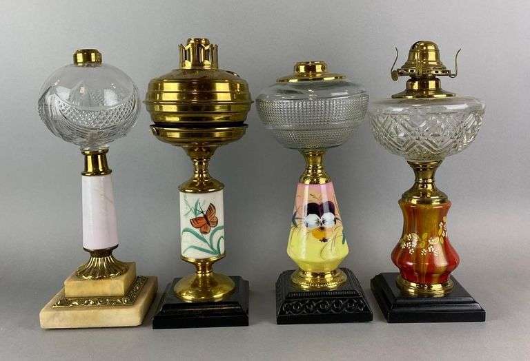 Includes 3 Hand Paint Floral Motif and white glass. Wear is consistent with age. Largest measures 14 1/2 x 6 1/2 x 6 1/2 inches