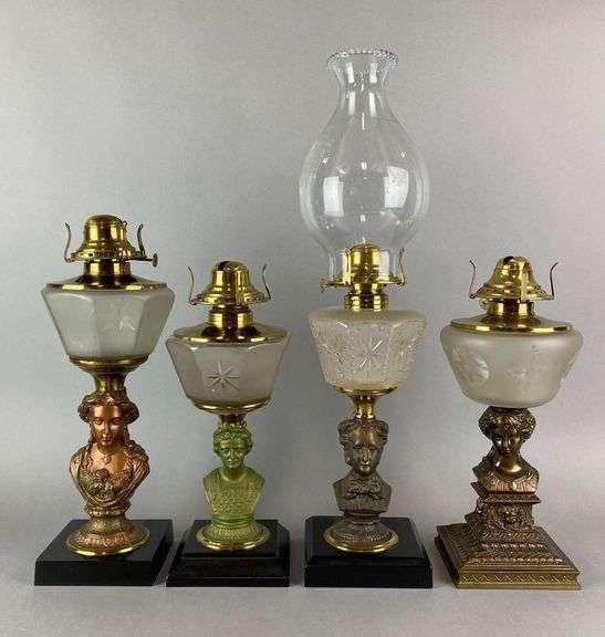 LOT 216 - Group of 4 Antique Victorian Figural Oil Lamps