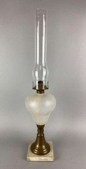 LOT 191 - Antique Victorian Etched Oil Lamp