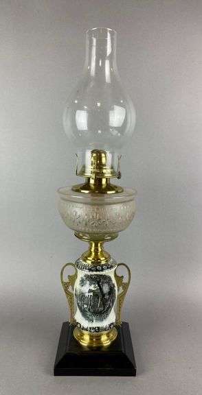 LOT 189 - Antique Victorian Scenery Motif Oil Lamp