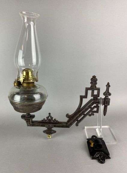 Includes wall mount, oil lamp and arm. Oil lamp measures 12 3/4 x 6 1/2 x 6 1/2 inches. Sconce measures 10 1/2 x 5 1/2 x 15 inches.