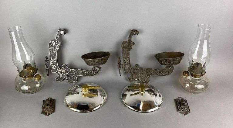 the pet that hold the reflector is loose. Includes 2 Mercury Reflectors, wall mounts, oil lamps and more. Largest oil lamp measures 12 x 7 x 7 inches. Largest reflector measures 3 x 7 1/4 x 7 1/4 inches. Scone measures 10 x 5 1/2 x 12 1/2 inches