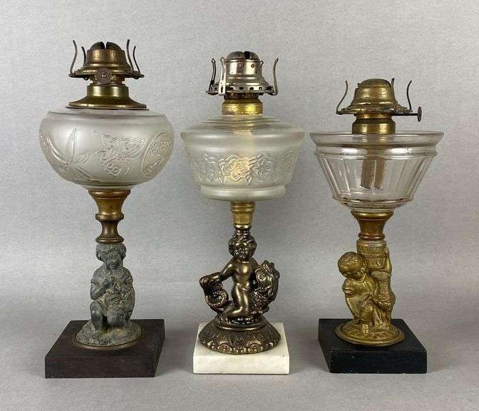 LOT 105 - Group of 3 Cast Metal Figural Cherub Oil Lamp Bases
