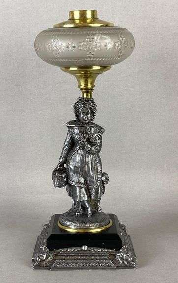 LOT 104 - Antique Victorian Girl Figural Cast Metal Oil Lamp Base