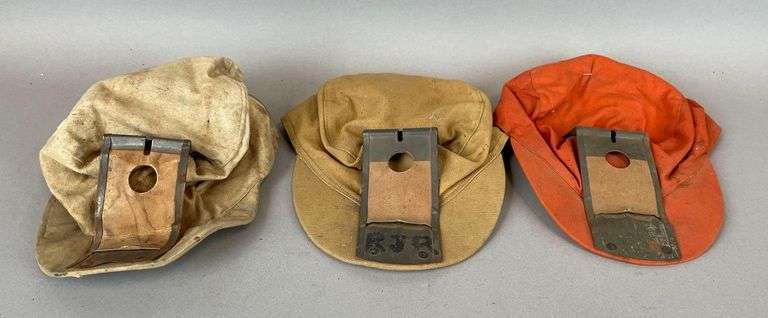 Group of 3 Vintage Miners Caps with Lamp Holders