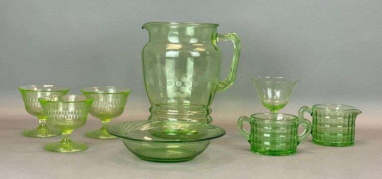 UV reactive, includes pitcher, creamer, sugar and more, pitcher measures 8 1/2 x 7 1/2 x 6 1/2 inches
