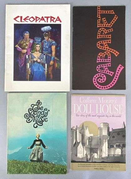 Includes 1945 Colleen Moores Doll House, 1965 The Sound of Music, 1963 Cleopatra, and 1972 Cabaret, Largest measures 12 1/2 x 9 1/4 inches.