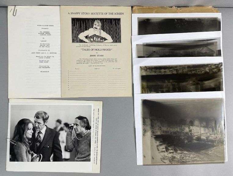 Includes 4 negatives of western sets, tales of Hollywood subscriber sheets, one is a lonely number preliminary production notes, and more