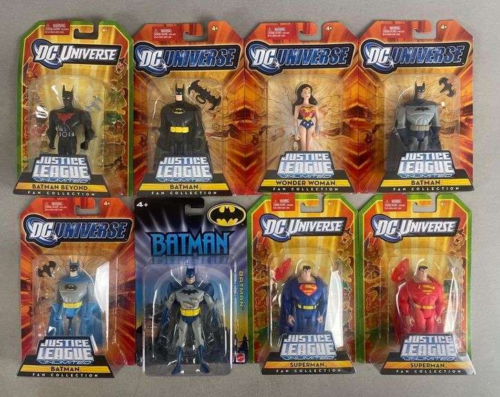 Includes Batman, Superman, Wonder Woman, packaging measures H