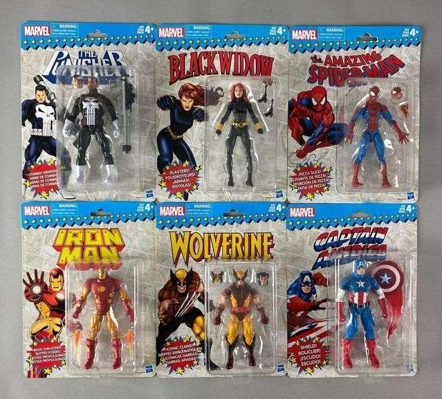 Includes Captain America, Wolverine, iron man and more, sealed, each measures 11” H x 8” W x 1 1/2” D