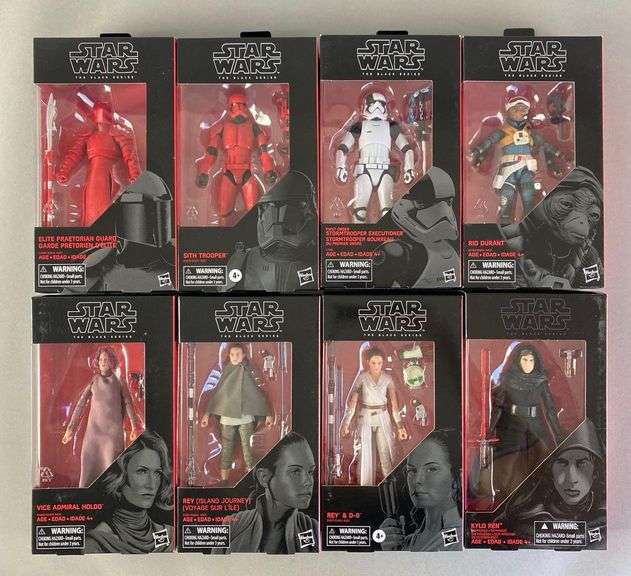 includes Kylo Ren, Rey, Elite Pretorian Guard and more, sealed, each box measures 9” H x 5” W x 2” D