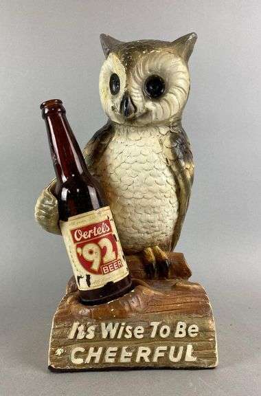 LOT 439 - Vintage Oertels ‘92 Beer Advertising Back Bar Chalk Owl Statue
