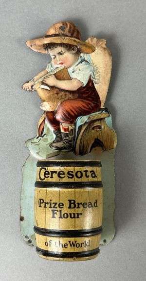 LOT 364 - Antique Ceresota Flour Advertising Tin Matchstick Holder