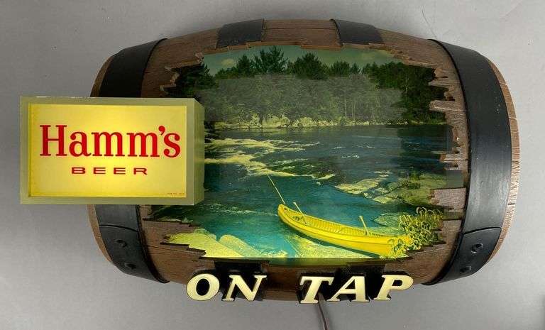 LOT 316 - Vintage Hamms Beer Barrel Light-Up Advertising Sign