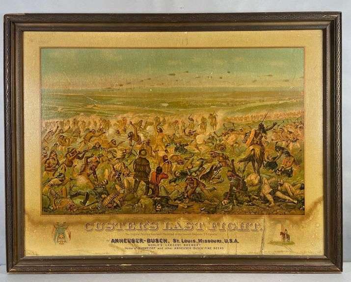 3rd party shipper recommended. Discoloration, crazing, small tears, chip on frame, measures H 36 1/4" x W 46 1/2"