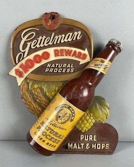 LOT 207 - Vintage Gettelman Beer Reward Bottle Advertising Sign