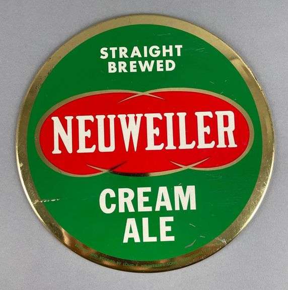 LOT 200 - Vintage Neuweiler Cream Ale Beer Tin Over Cardboard Advertising Sign
