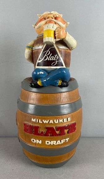 LOT 153 - Vintage Blatz Beer Barrel Man Chalk Advertising Back Bar Statue