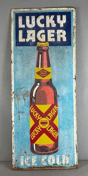 LOT 108 - Vintage Lucky Lager Beer Embossed Metal Advertising Sign