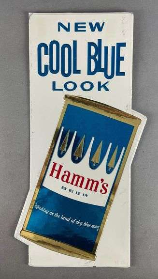 LOT 62 - 1960s Hamms Beer Can Tin on Cardboard Embossed Advertising Sign