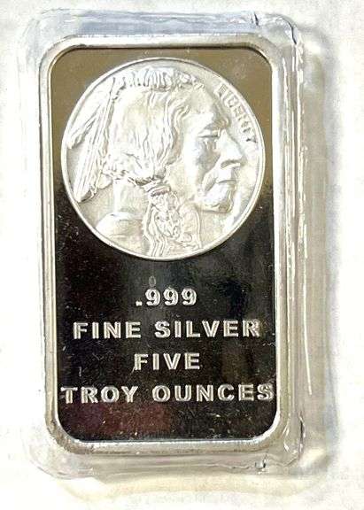 LOT 1019 - Native American Buffalo 5 oz .999 Fine Silver Bar Sealed