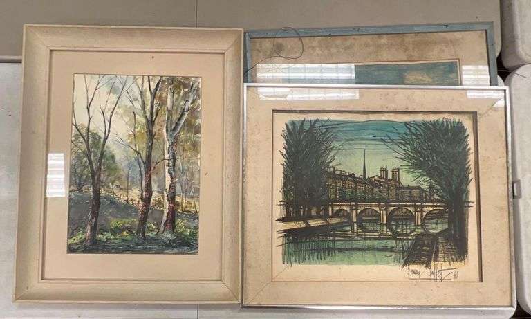 includes Mary R Tift Woodblock, Bernard Buffet, and other. Some broken glass, largest measures 24" x 29"