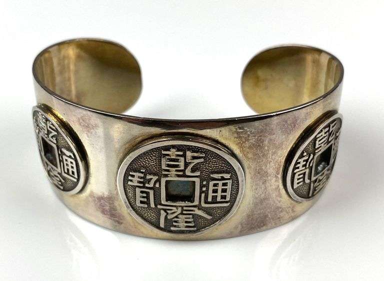 LOT 717 - Chinese Coin Design . 925 Sterling Silver Cuff