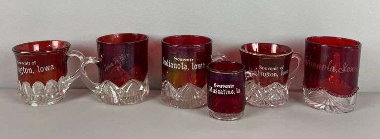 LOT 471 - Group of Vintage Ruby Stained Glass Iowa Souvenir Mugs