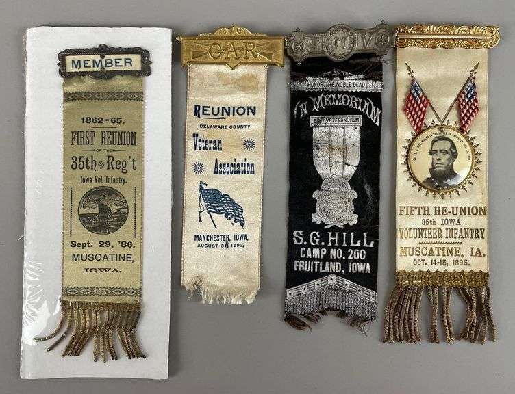 LOT 460 - Group of Antique GAR Encampment Iowa Ribbon Badges