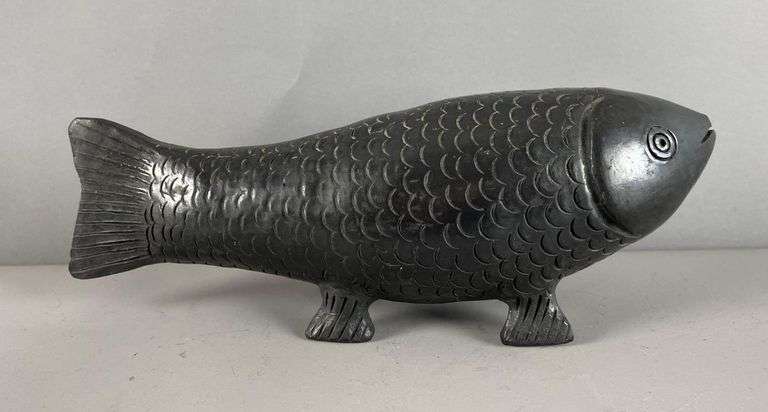 LOT 276 - Black Pottery Koi Fish
