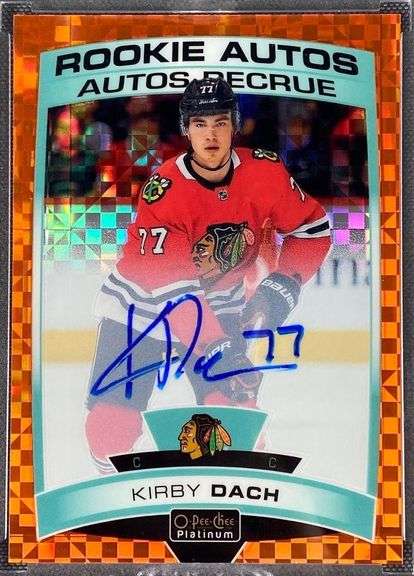 LOT 219 - 2019 - 20 O-Pee-Chee Platinum Kirby Dach Orange Checkers Rookie Auto 3/15
